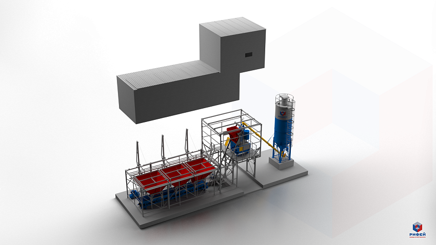• "Рифей Бетон Зима-60" сконструирован на базе бетонного завода Рифей Бетон-60, производительностью 45 куб.м. в час;