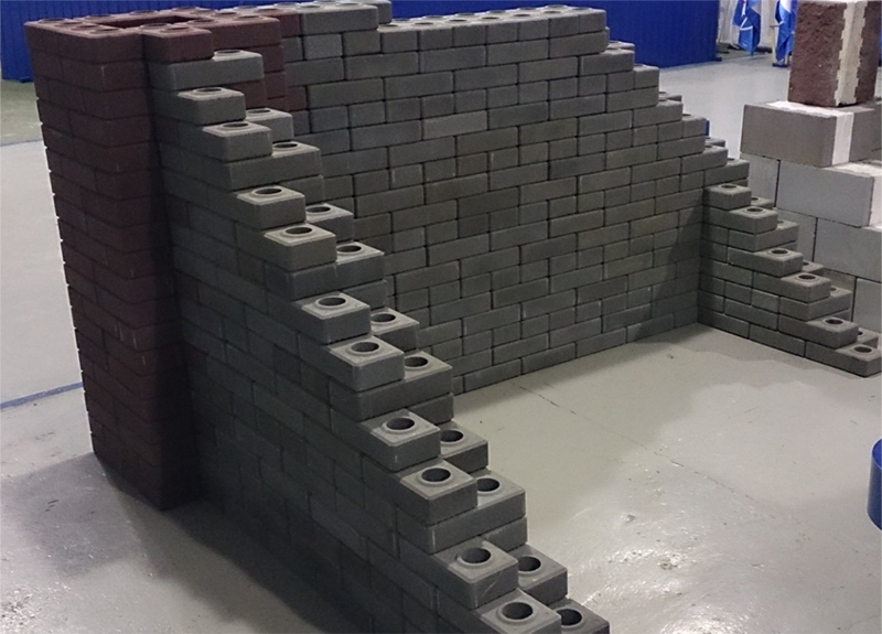 Лего-кирпич имеет особый соединительный элемент – замок. Замок представляет собой отверстие с углублением с нижней стороны и выпирающим кольцом сверху. Данное соединение обеспечивает быстроту кладки. Также, стоит отметить что простота укладывания кирпича может значительно сэкономить на строительстве, ведь, кладку можно осуществлять своими силами.